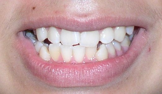 In an underbite the lower front teeth extend outwards. The medical term for underbite is prognathism. An underdeveloped upper jaw and overdeveloped lower jaw are characteristic features of an underbite. It can be caused by excessive thumb sucking, nasal obstruction, and tongue thrusting. If not treated, an underbite can lead to poor functioning of the teeth and digestive problems. Underbites can be treated without surgery utill the patient reached puberty; therefore an early diagnosis is critical. Your dentist will try to modify jaw and teeth growth using headgear and braces. Treatment done at a later stage involves teeth extraction and surgery to correct the structure of the jaws.